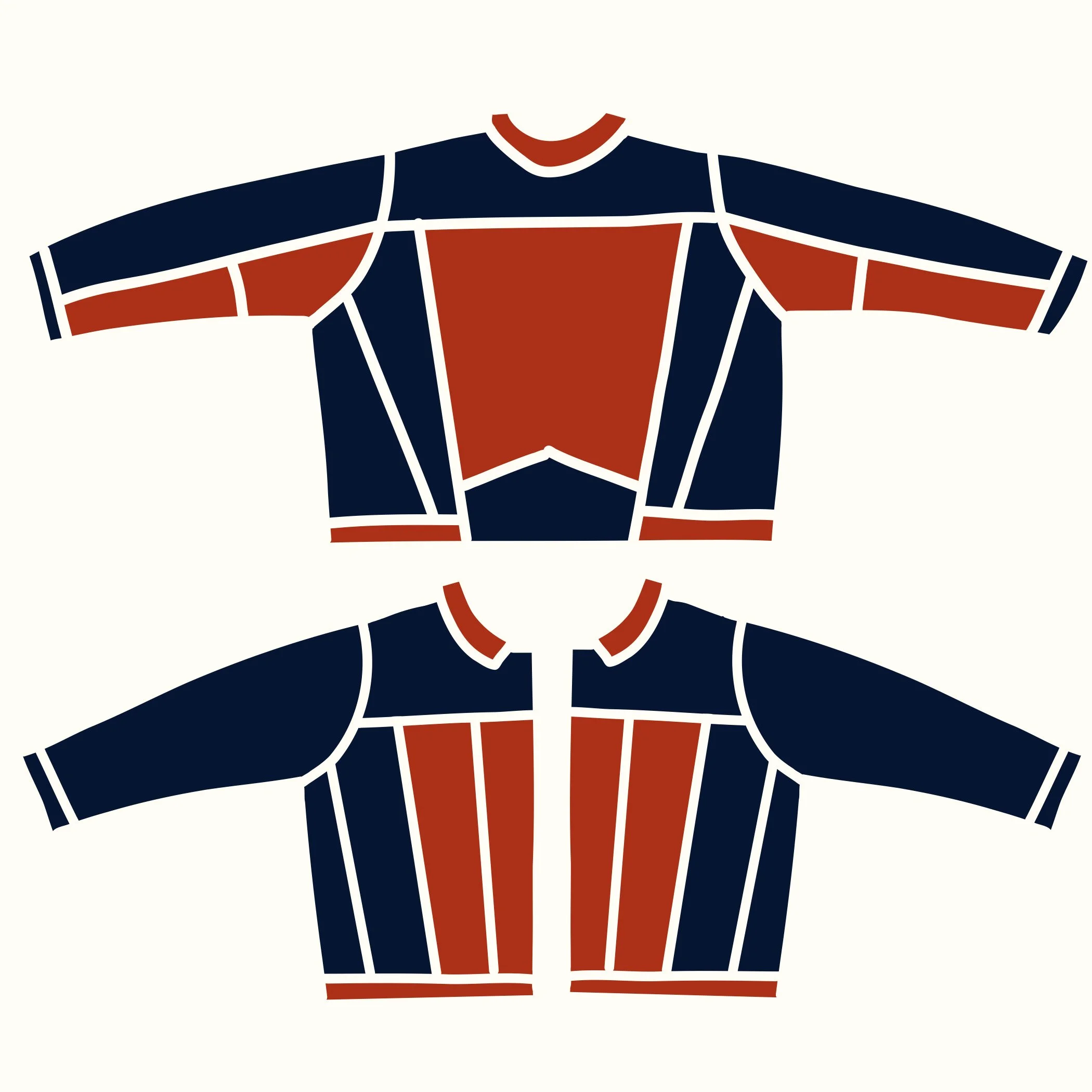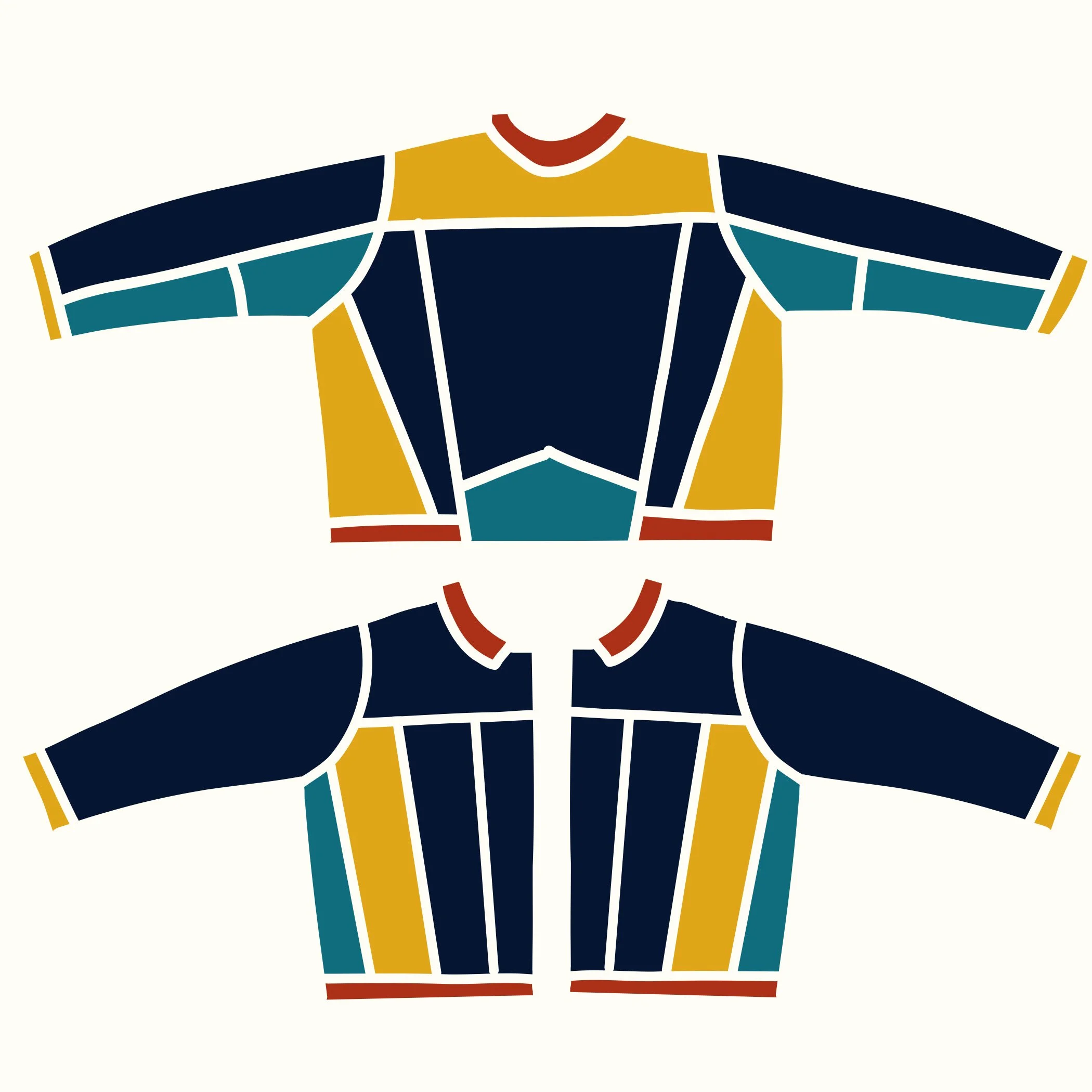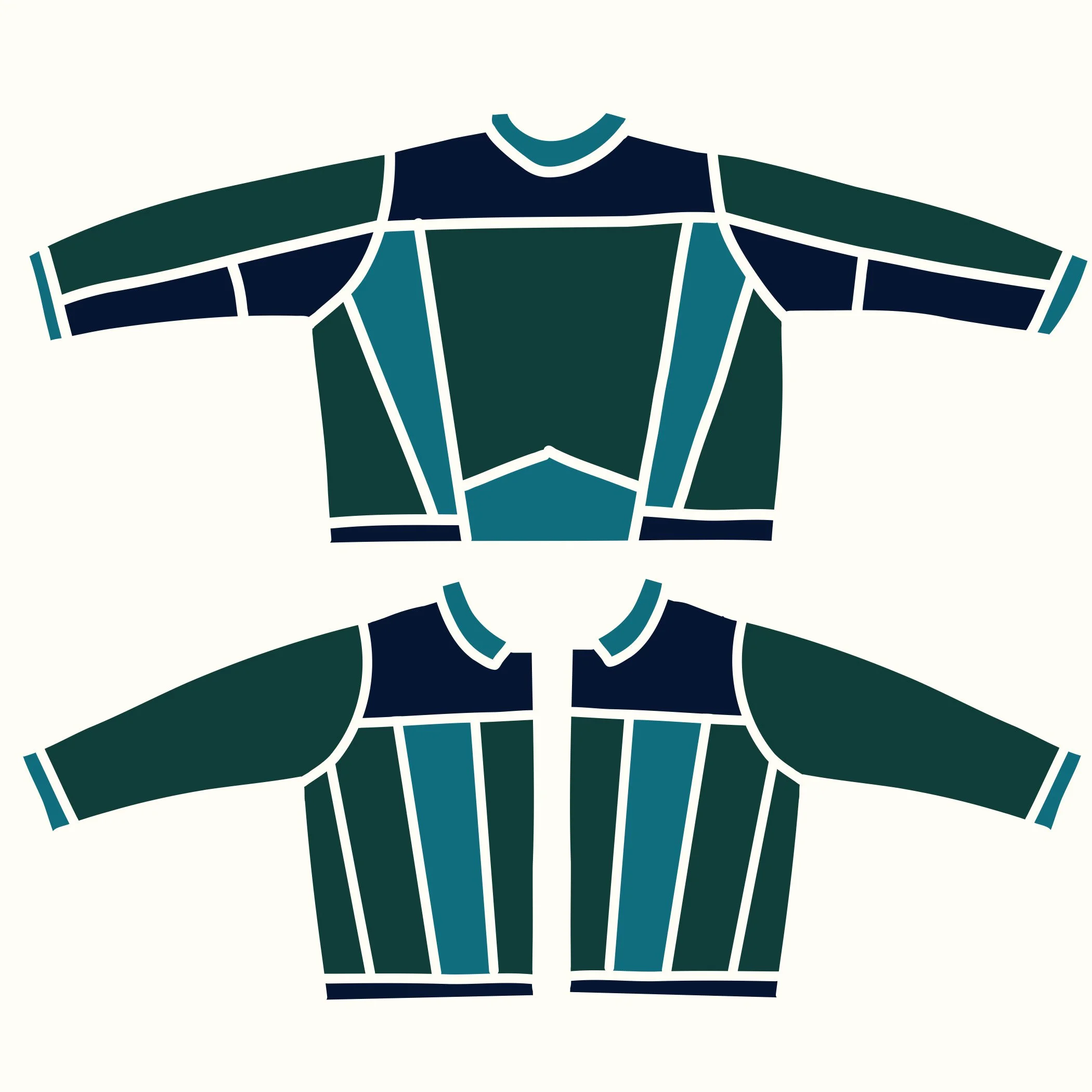 Ensuite vient la question du placement de ces couleurs. Sur ma veste il y a beaucoup de pièces (17…) et donc une infinité de combinaisons de couleurs.