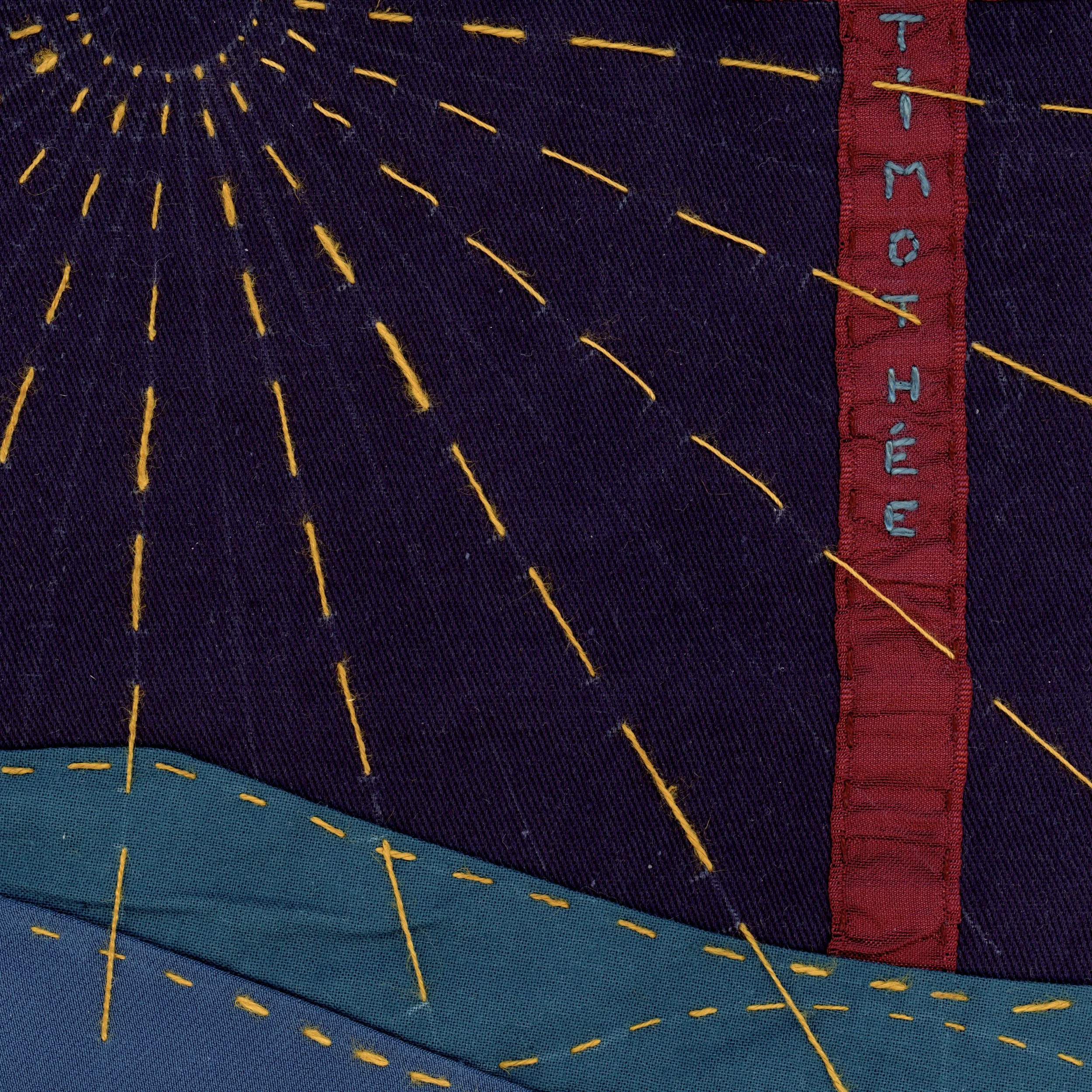 Les détails, brodés en coton perlé et en lin, créent du mouvement entre les vagues.